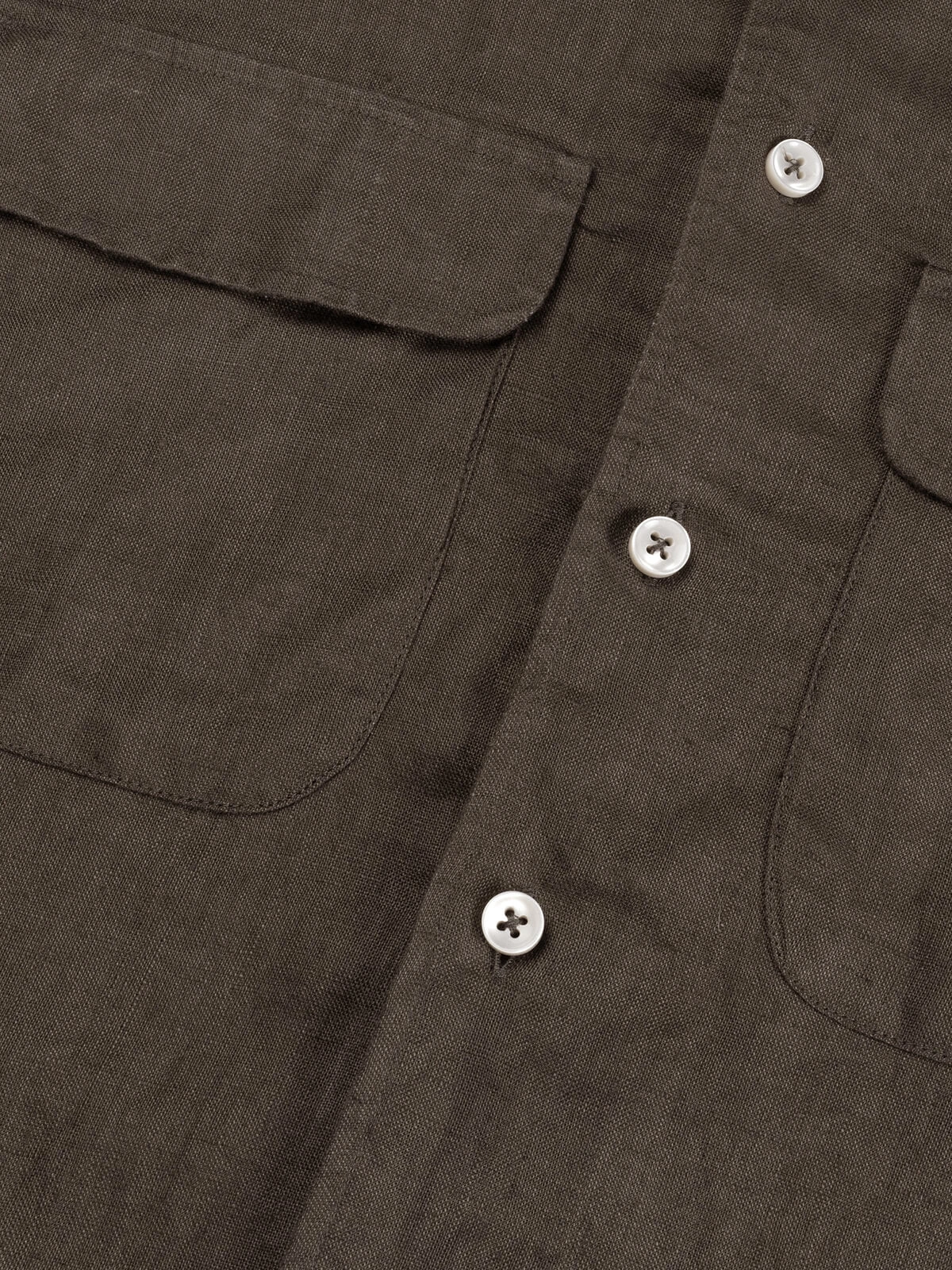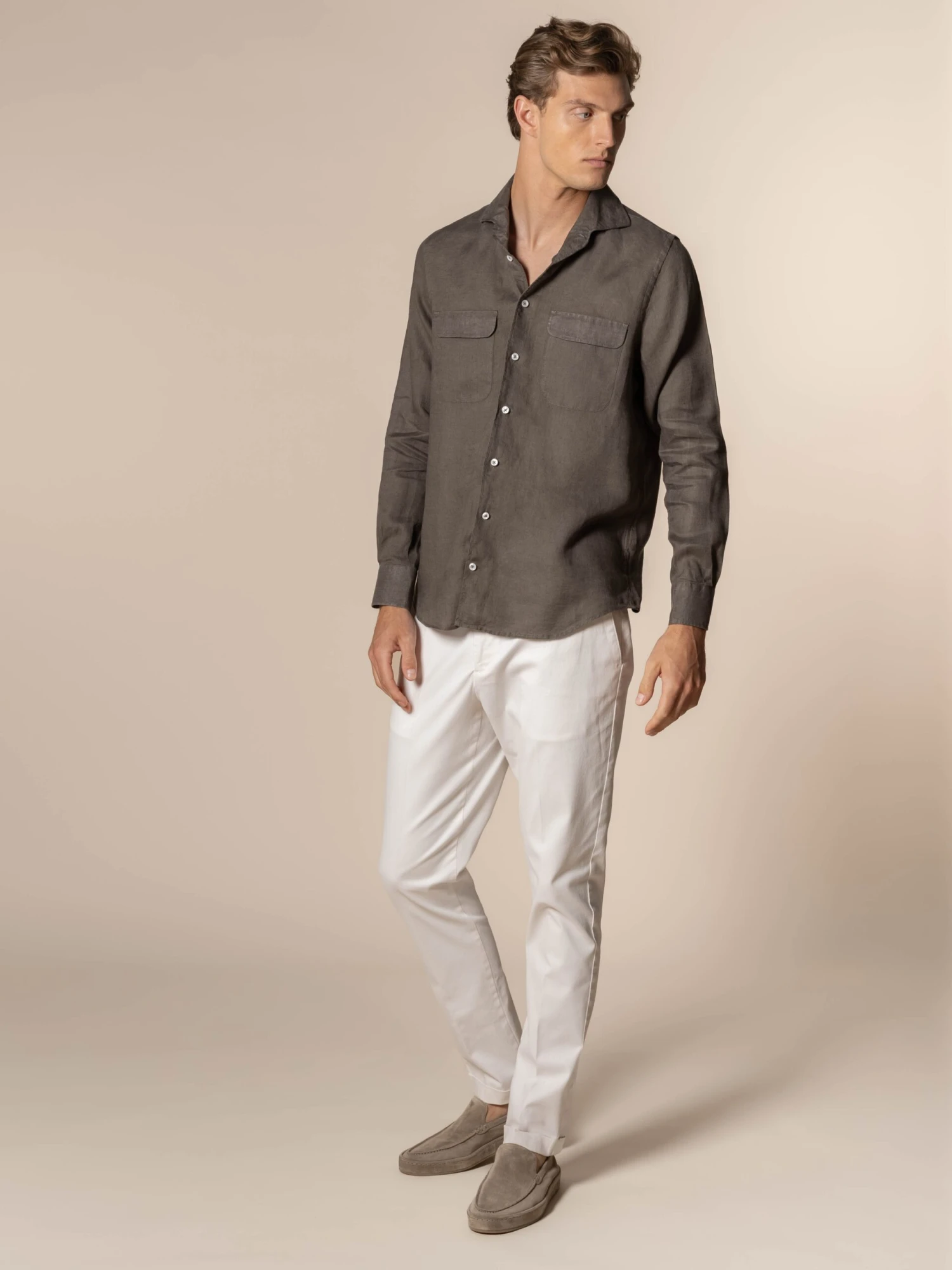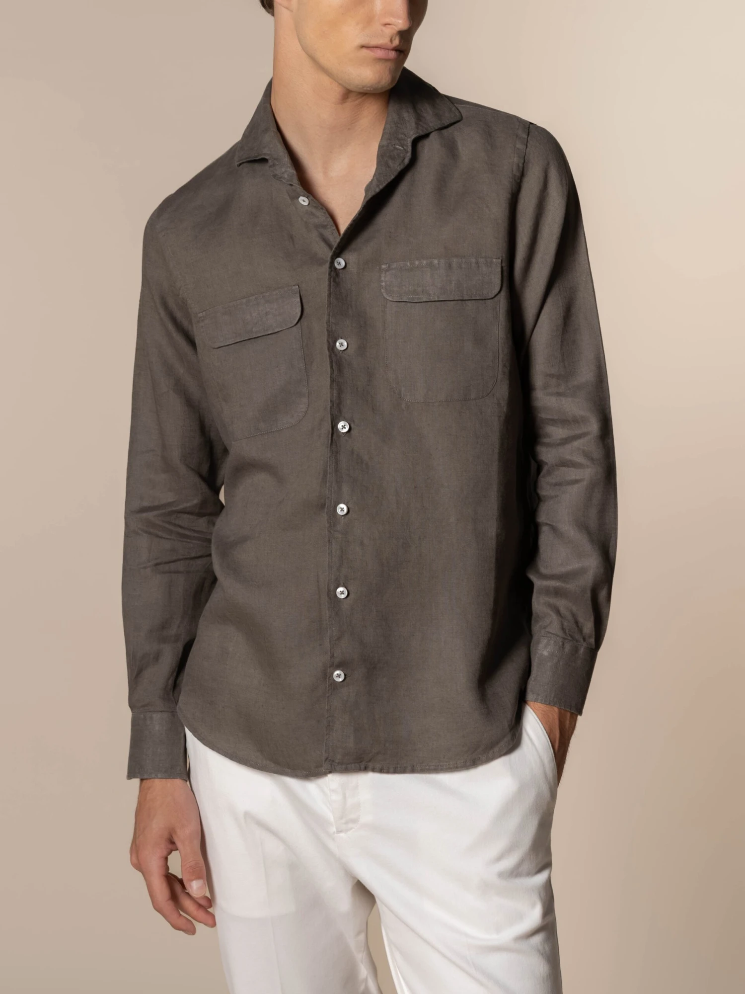The Aurélien Pocket Shirt is a refined option for the warmer months. Made from breathable linen, it’s tailored with a spread collar with facings to ensure it stays in place when wearing it open. Perfect for both casual and evening wear during the holidays and for leisure time in the city.