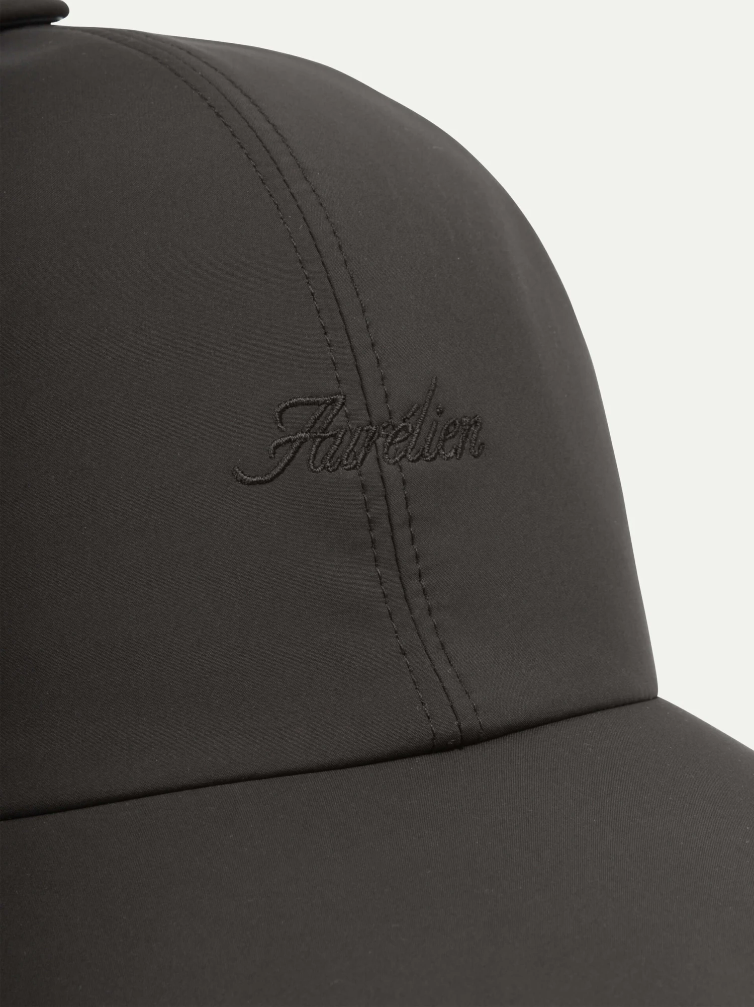 This baseball cap has been made in Italy from luxurious technical fabric. The soft matte outer shell is crafted from recycled fish nets and boasts a wind- and waterproof finish, while the interior is lined with 100% cotton for ultimate comfort. A refined detail, the signature Aurélien gold satin piping around the brim. Ideal for refined leisure looks.