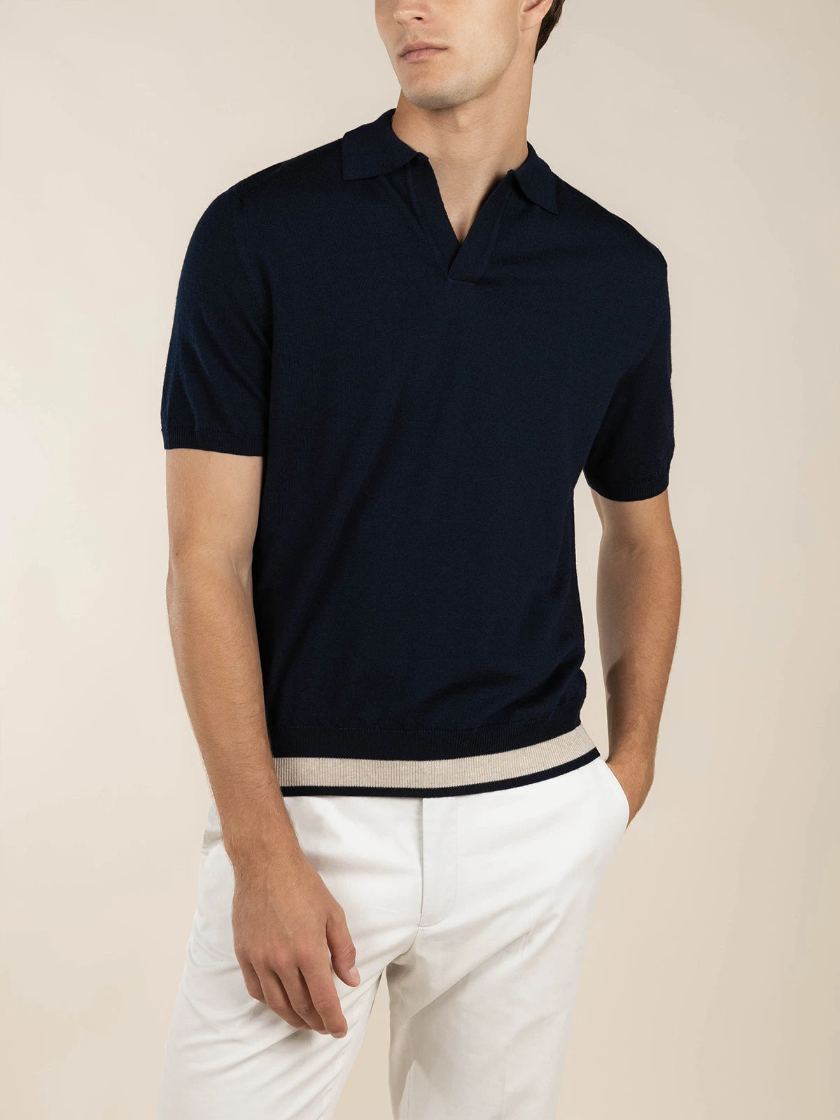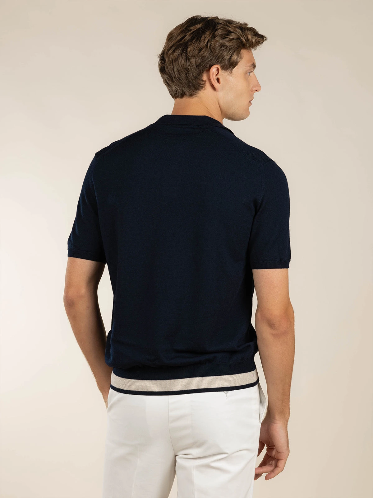 As shiny as silk, as soft as cashmere. This polo is crafted in Italy from Cashwool®, an exceptionally fine fibre sourced from selected Merino sheep bred in Australia, only 19.5 microns in diameter. Ideal for refined leisure time looks.