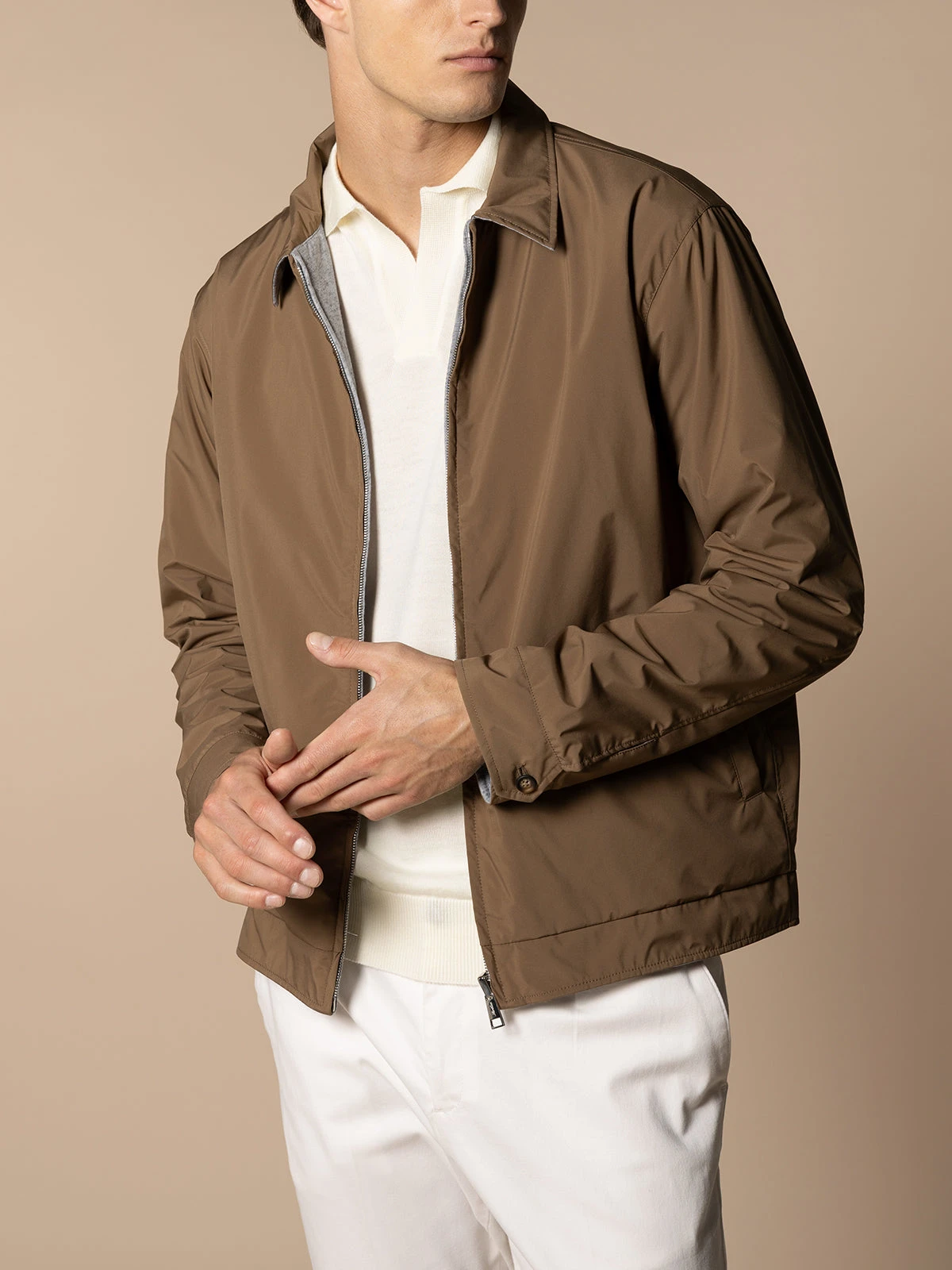 This reversible Caramel Voyager Jacket is crafted with the intrepid explorer in mind. The soft matte outer shell is crafted from recycled fish nets and boasts a wind and waterproof finish. The interior is lined with a cashmere blend for lightweight yet sumptuous comfort. The lightly-padded design provides a warm embrace while exuding chic Mediterranean style. An indispensable, elegant companion on your journey.