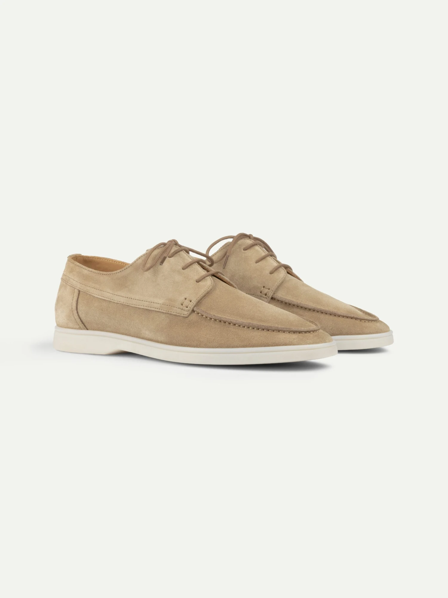 These boat loafers are a dapper choice whether you’re on deck or ashore. Handmade in Italy, they feature supple suede uppers and non-marking natural rubber soles for comfort and grip. With their refined silhouette and nautical heritage, they offer a timeless blend of elegance and ease — ideal for coastal living or city strolls.