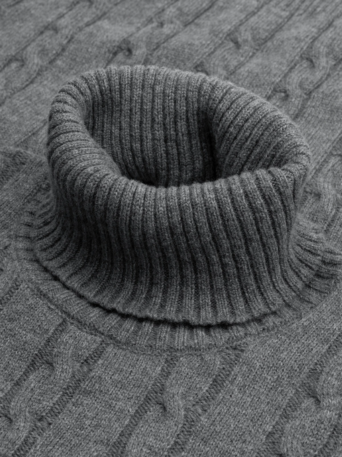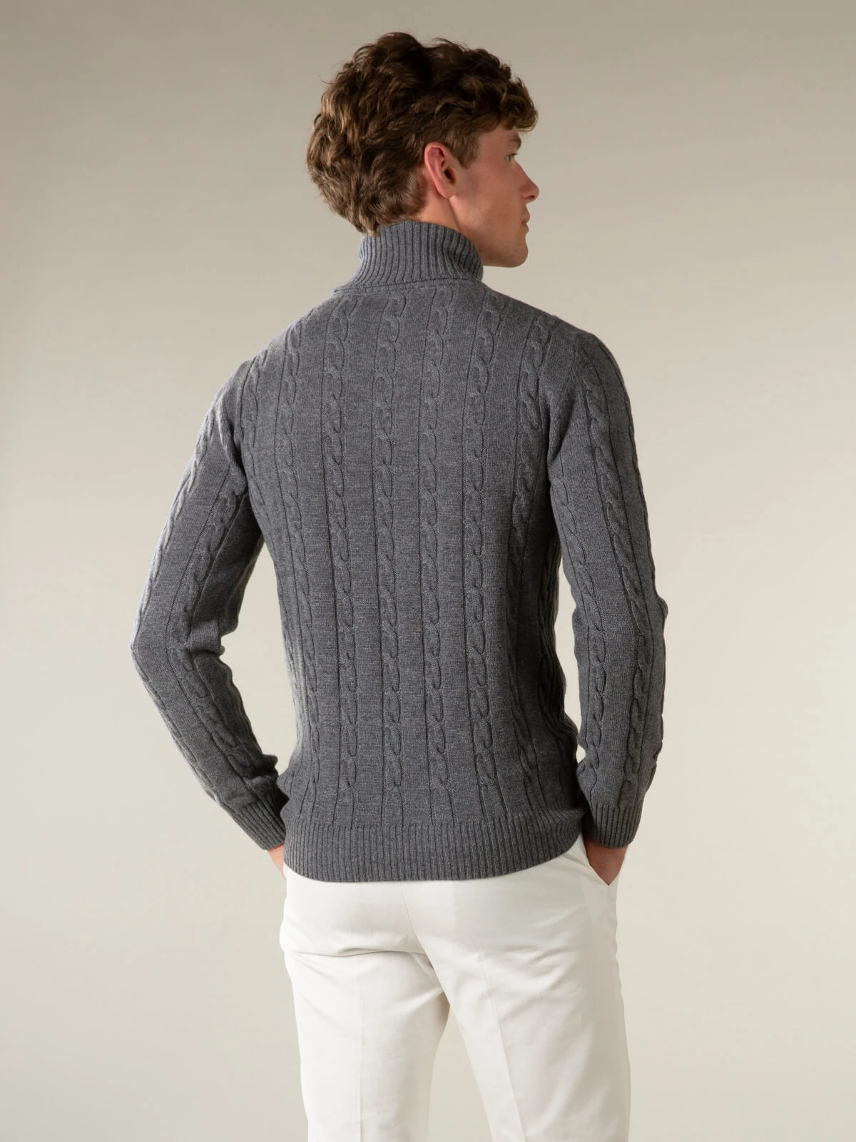 This rollneck sweater has been knitted in Italy from a Cashmere and Extrafine Merino wool blend that’s known for its remarkably soft feel. The cable motif adds graphic interest resulting in a cosy appearance. This item is sure to keep you warm on colder days.