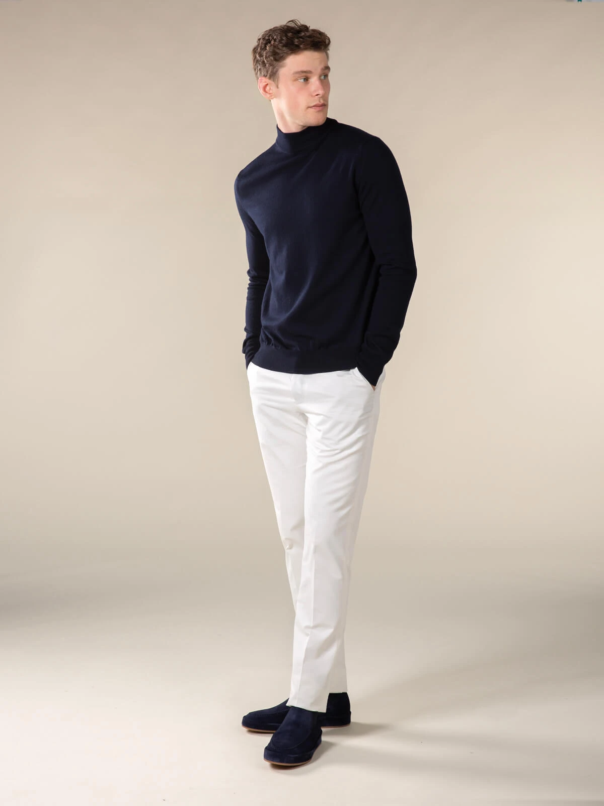 As shiny as silk, as soft as cashmere. This sweater is crafted in Italy from Cashwool®, an exceptionally fine fibre sourced from selected Merino sheep bred in Australia, only 19.5 microns in diameter. Ideal for refined leisure time looks. One for true connoisseurs.