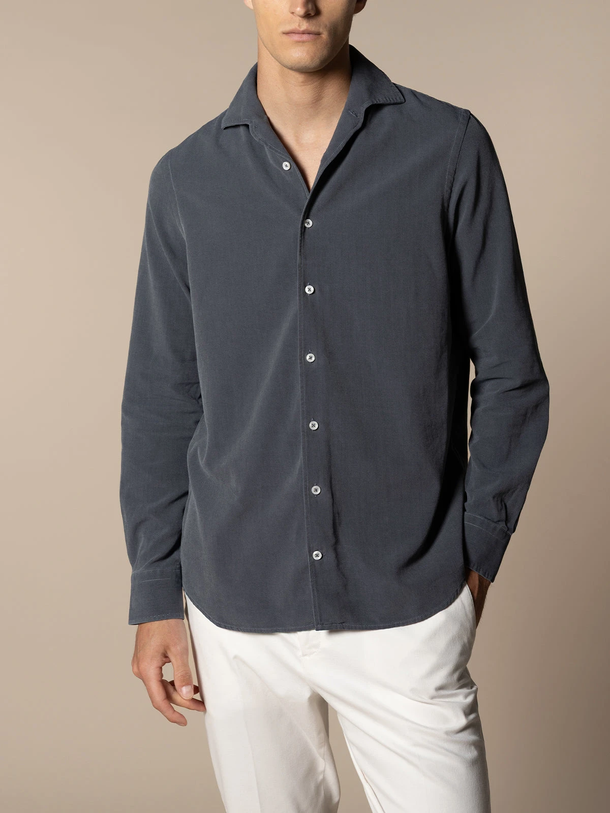 The denim shirt will work as well with jeans as smarter tailoring. Made from denim in a classic dark grey wash, this shirt is fitted with stays to keep the collar sharp and has subtle pleating at the back for a comfortable fit across the shoulders. This sophisticated, yet casual style is perfect for leisure time.