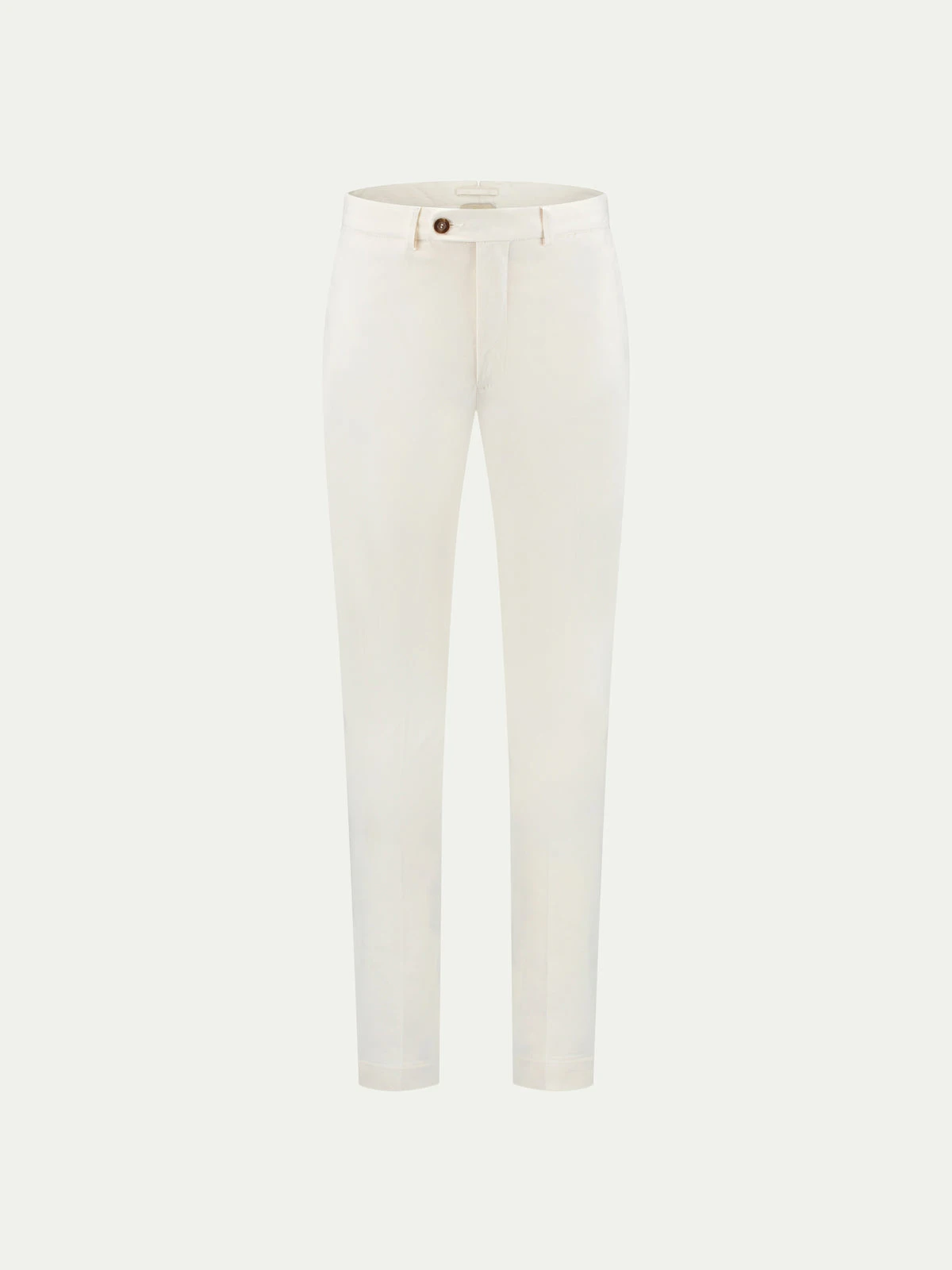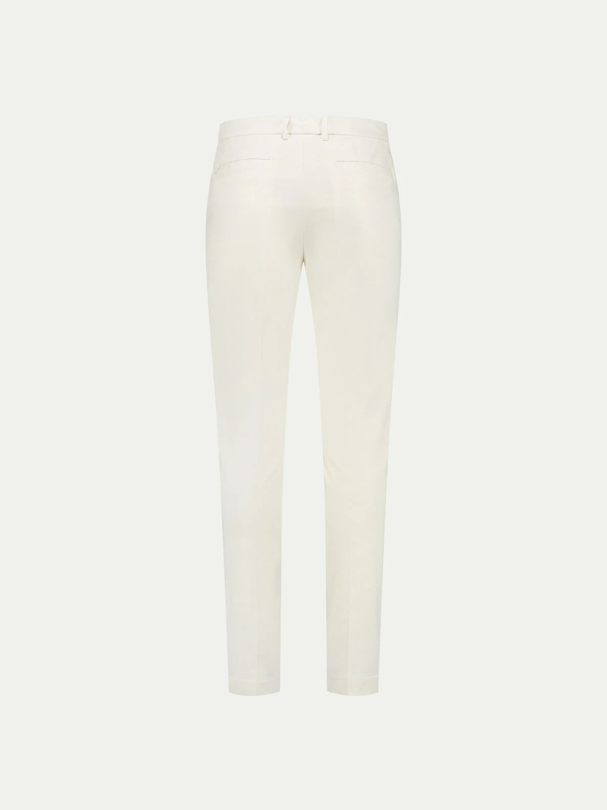These Ivory Metropolitan Trousers are perfect for both travel and work. Made with ivory stretch cotton, they offer ultimate comfort and versatility. The flat front design creates a streamlined silhouette, highlighting their crisp lines. Dress them up or down for any occasion.
