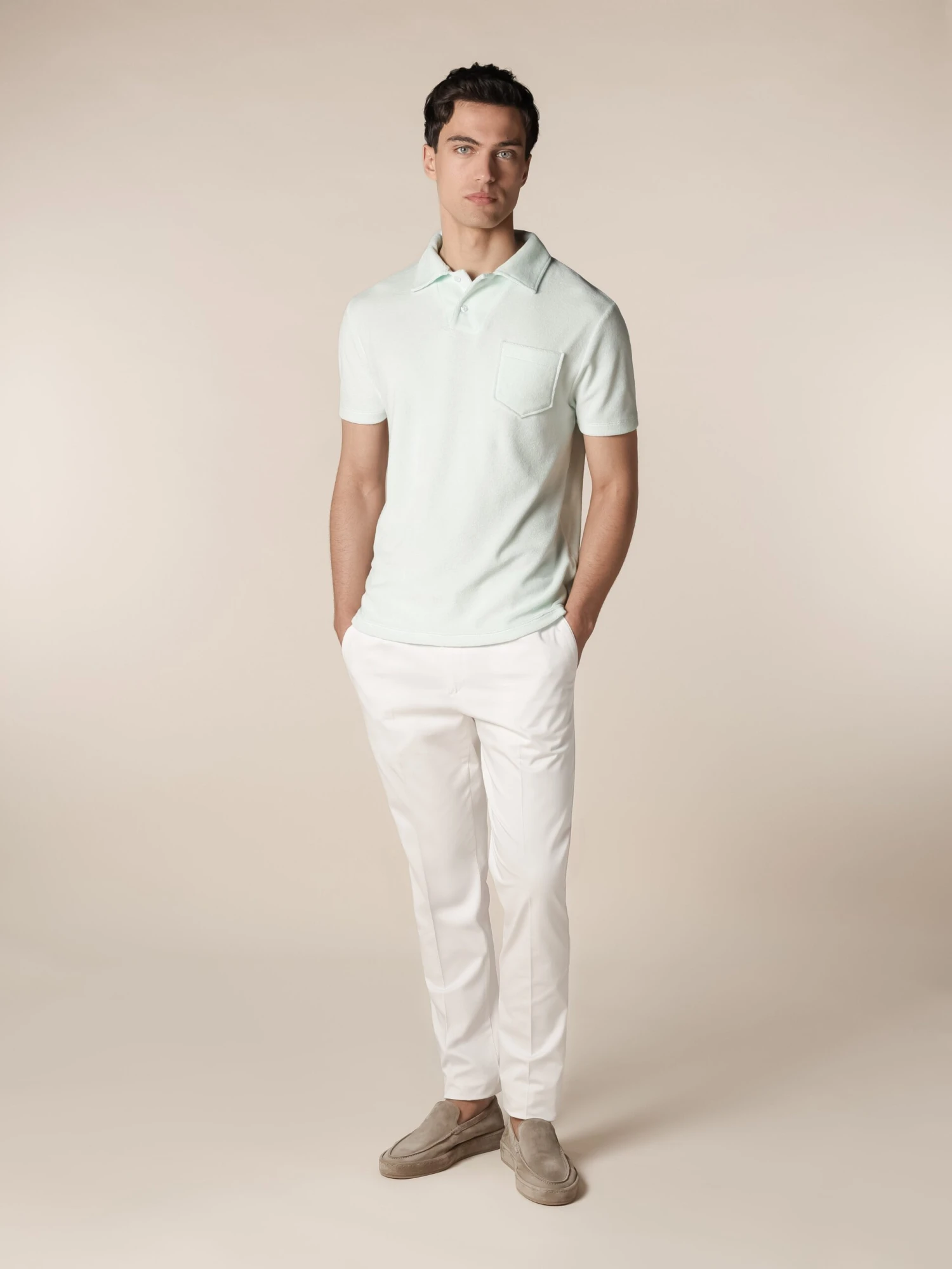 From the city to the sun lounger, the iconic Aurélien Terry Polo is designed for laid-back elegance and ultimate comfort. Crafted from incredibly soft cotton-terry fabric, this polo is a true leisure essential, perfect for warm days and relaxed moments. Defined by its distinctive collar and signature chest pocket, the Terry Polo blends timeless style with effortless ease. Naturally wrinkle-free, it is the perfect travel companion, keeping you polished wherever the journey leads. A classic piece that only gets better with each wear, it’s ideal for carefree summer days and beyond.