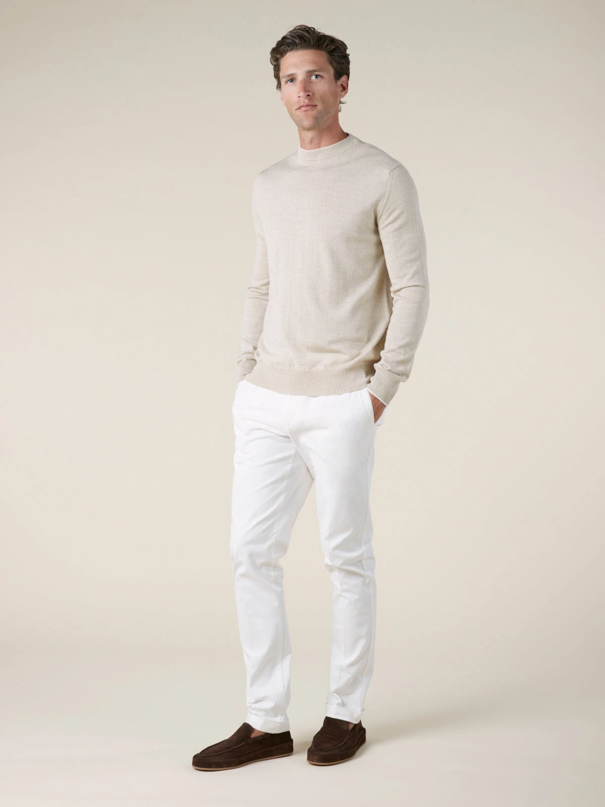 As shiny as silk, as soft as cashmere. This sweater is crafted in Italy from Cashwool®, an exceptionally fine fibre sourced from selected Merino sheep bred in Australia, only 19.5 microns in diameter. Ideal for refined leisure time looks. One for true connoisseurs.