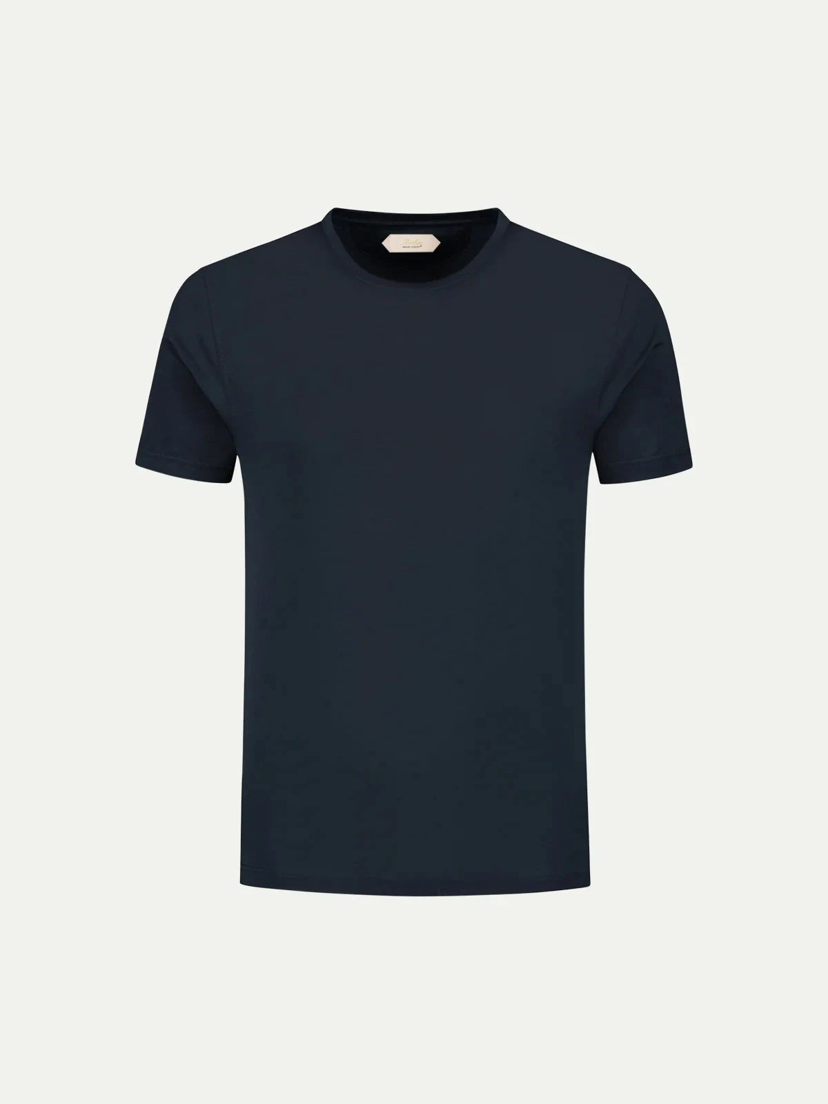 Short-sleeved T-shirt in super-soft cotton. Designed with a classic crew neck collar, this T-shirt is knitted from fine Egyptian cotton, so it drapes effortlessly and comfortably. The extra-long staple and double mercerized cotton is characterized by outstanding softness and a silky feel that maintains with wear. Ideal for layering throughout the year.
