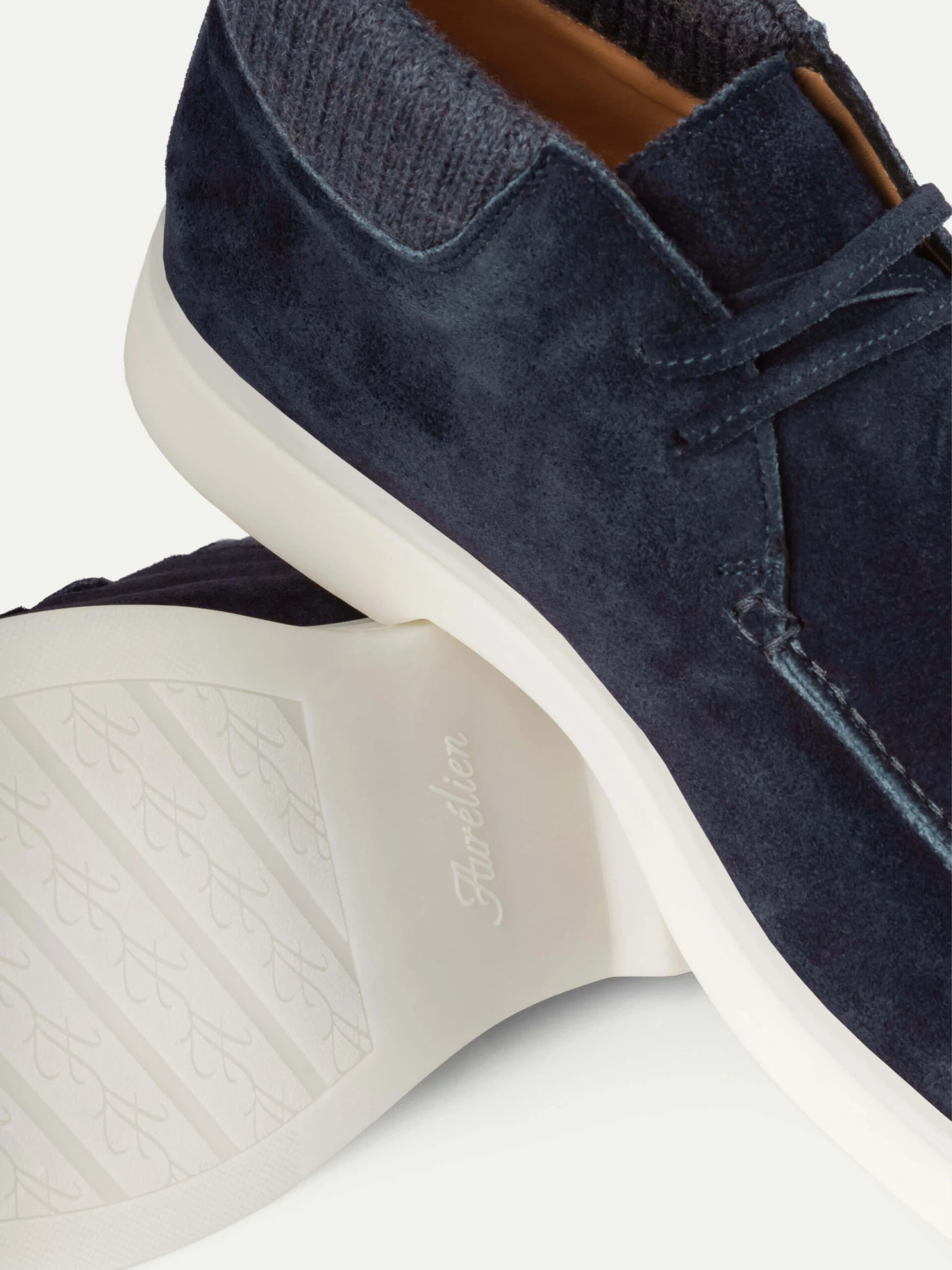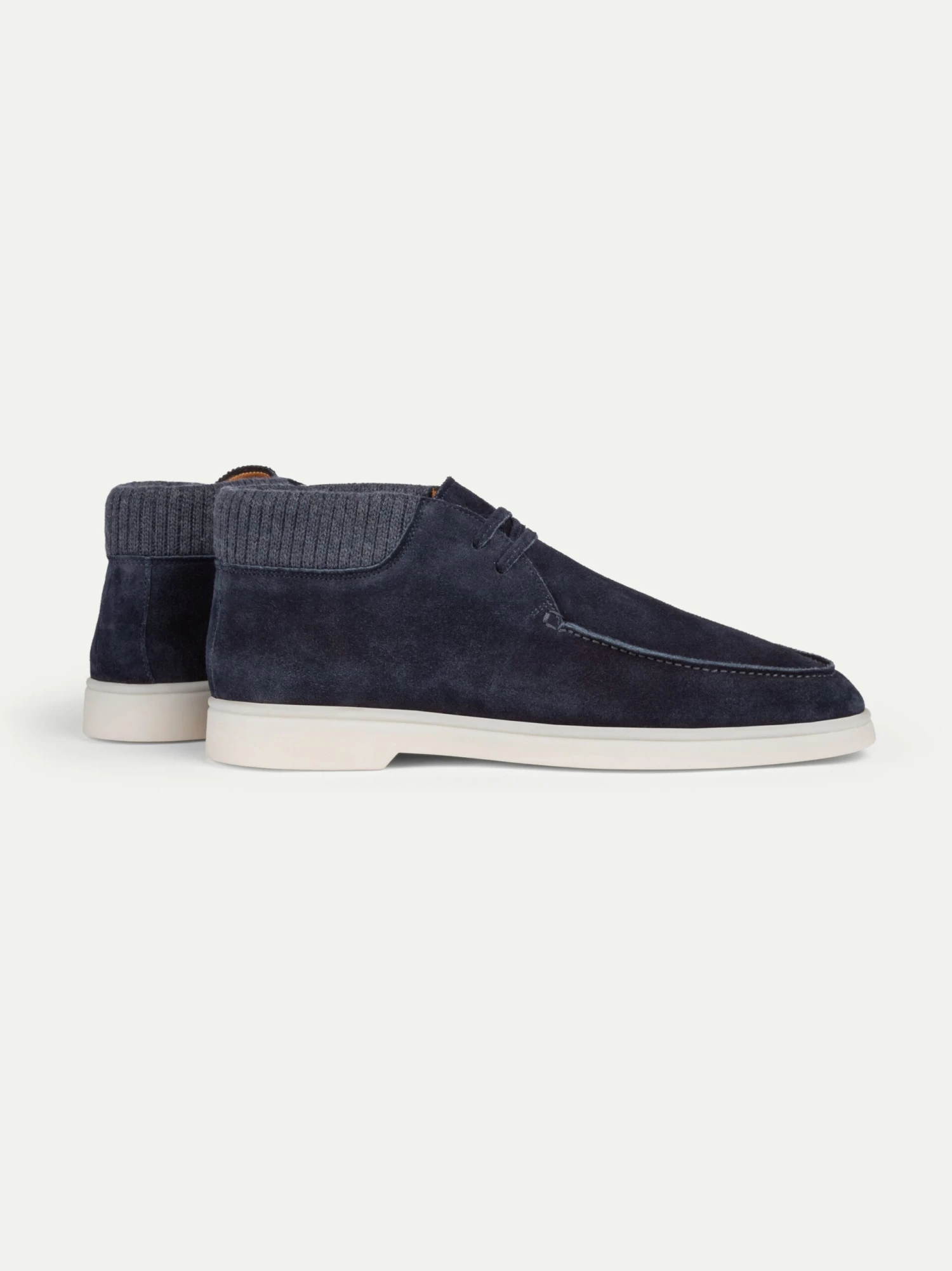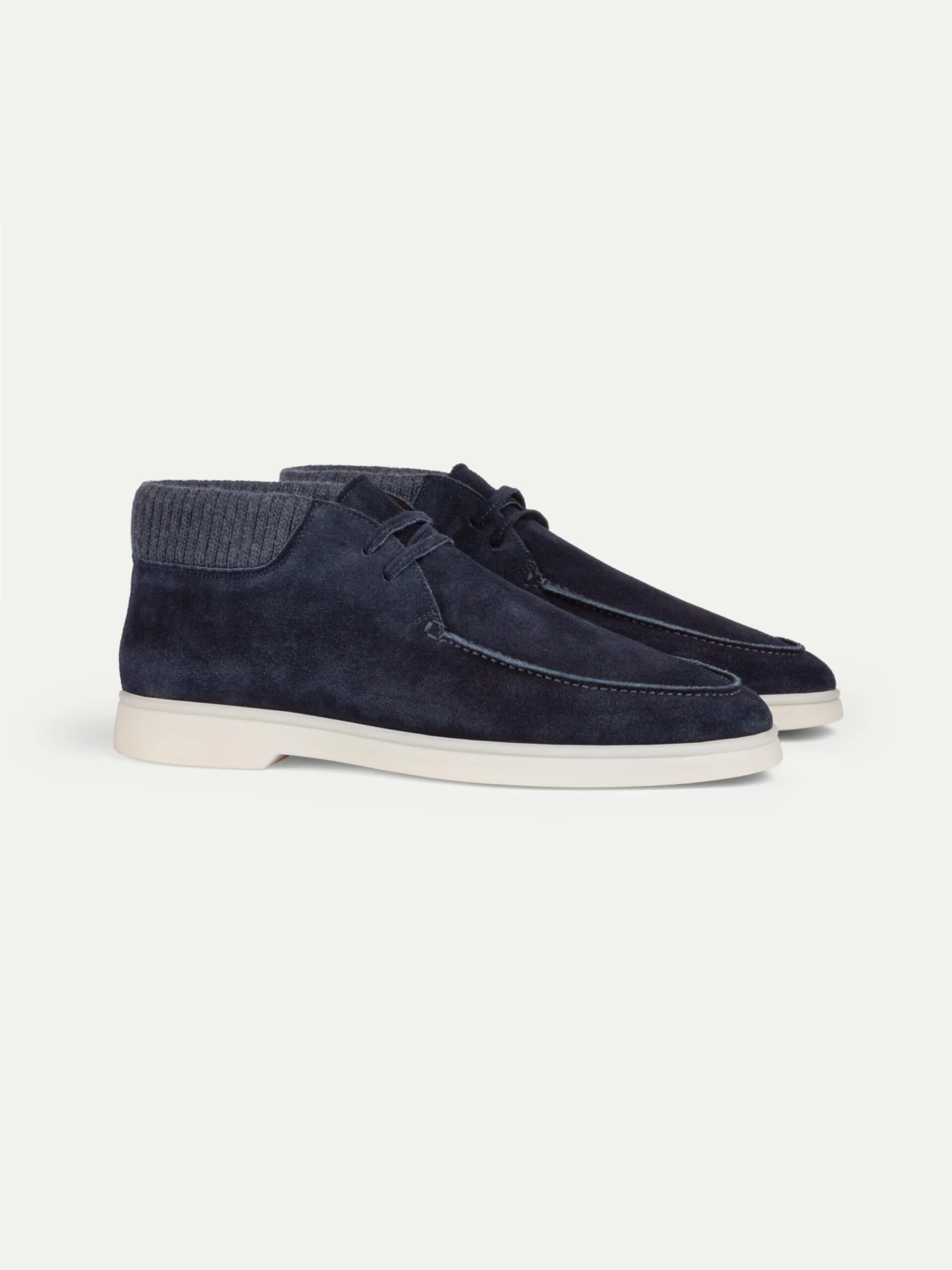 These Desert Boots have been made in Italy from supple suede and set on ivory coloured soles. The Cashwool® trims ensure extra comfort and warmth. The timeless, understated profile means they can be worn with practically any outfit – they’re a great way to make smart tailoring feel less formal. Combine them with our matching belt to complete your look.