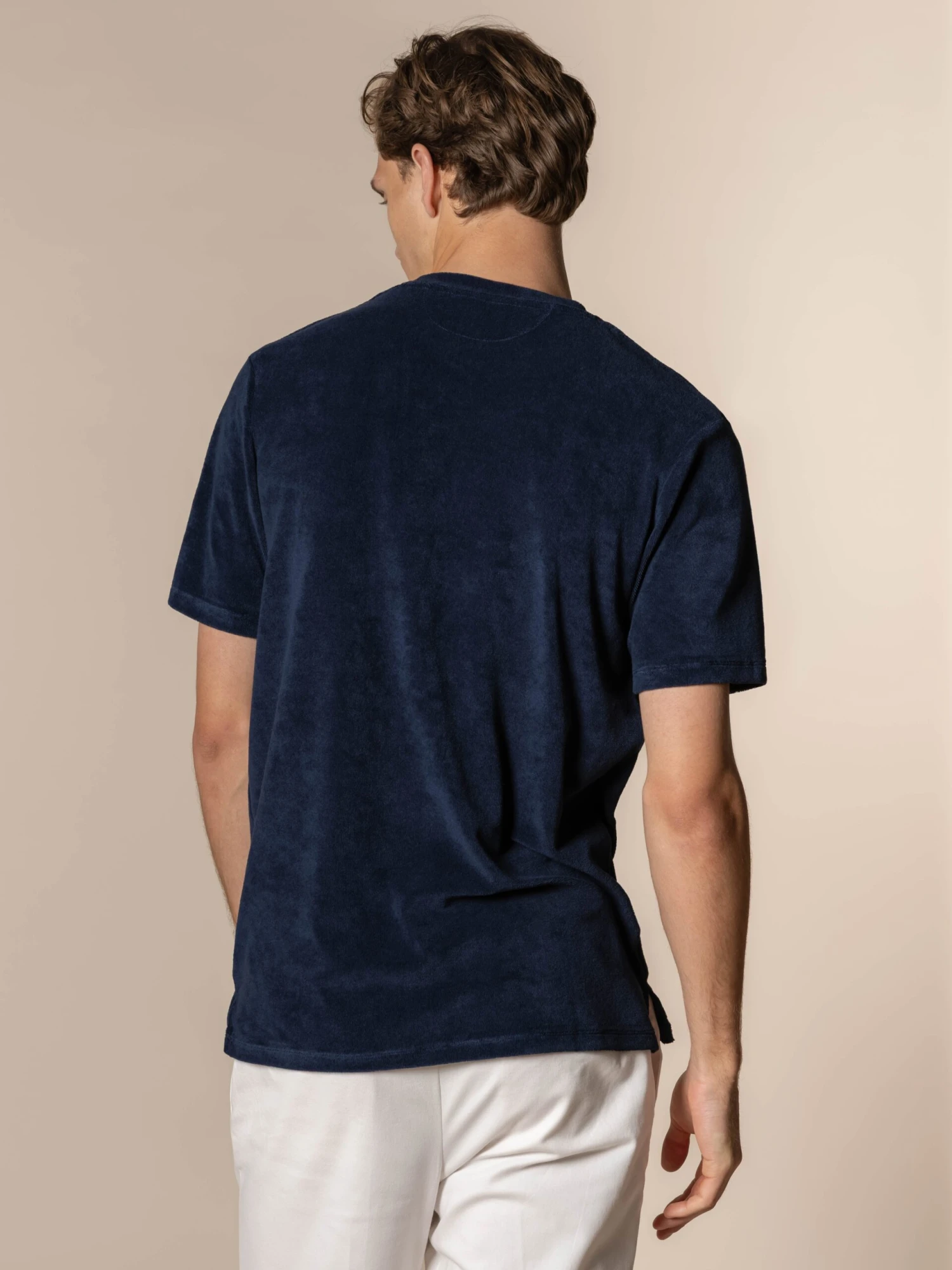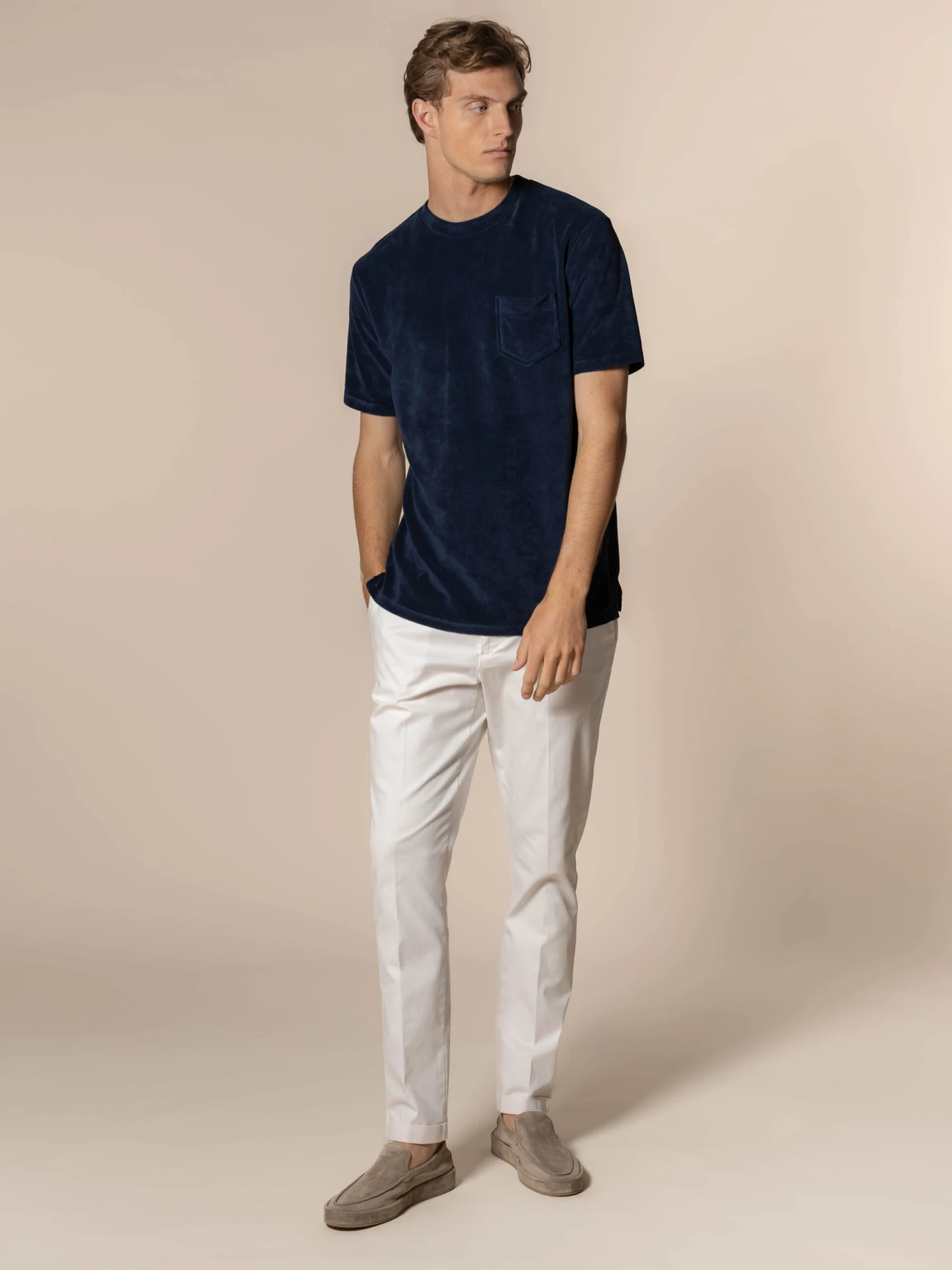 The iconic Aurélien Terry Towelling T-Shirt is a must-have staple, seamlessly blending comfort and sophistication. Crafted from incredibly soft cotton-terry fabric, it’s perfect for effortless style from the city to the sun lounger. Designed with a distinctive chest pocket and a wider collar, it offers a relaxed yet refined look. The signature Aurélien satin gold trim in the neck adds a subtle touch of elegance. With its timeless appeal, this holiday essential only gets better with each wear.