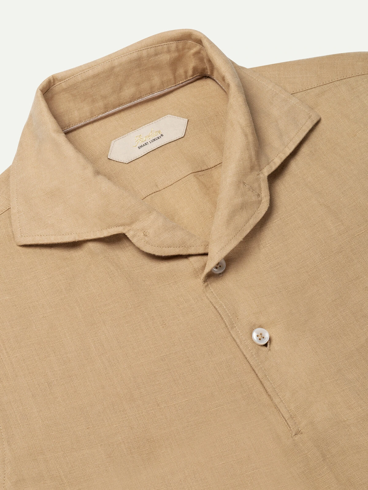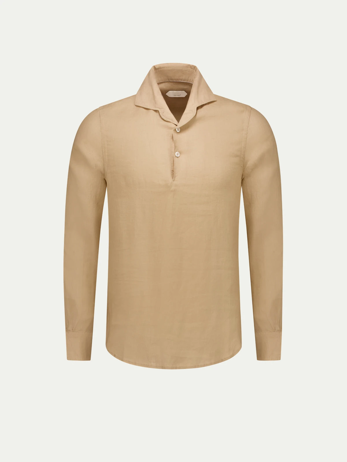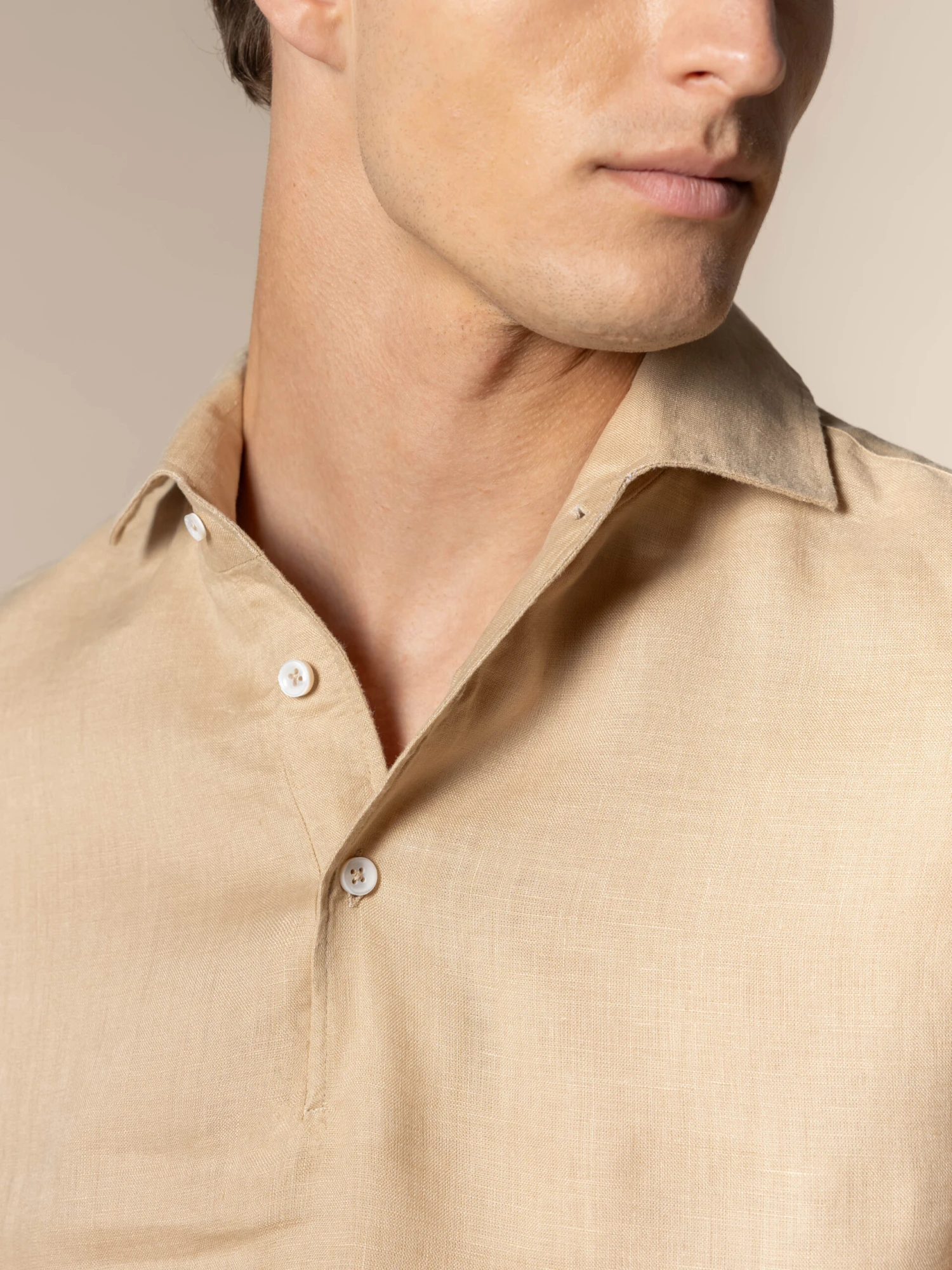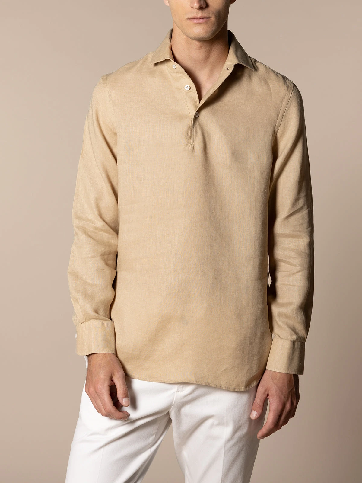 The Aurélien Pop-over Shirt is a refined option for the warmer months. Made from breathable linen, it’s tailored with a spread collar with facings to ensure it stays in place when wearing it open. Perfect for both casual and evening wear during the holidays and for leisure time in the city.