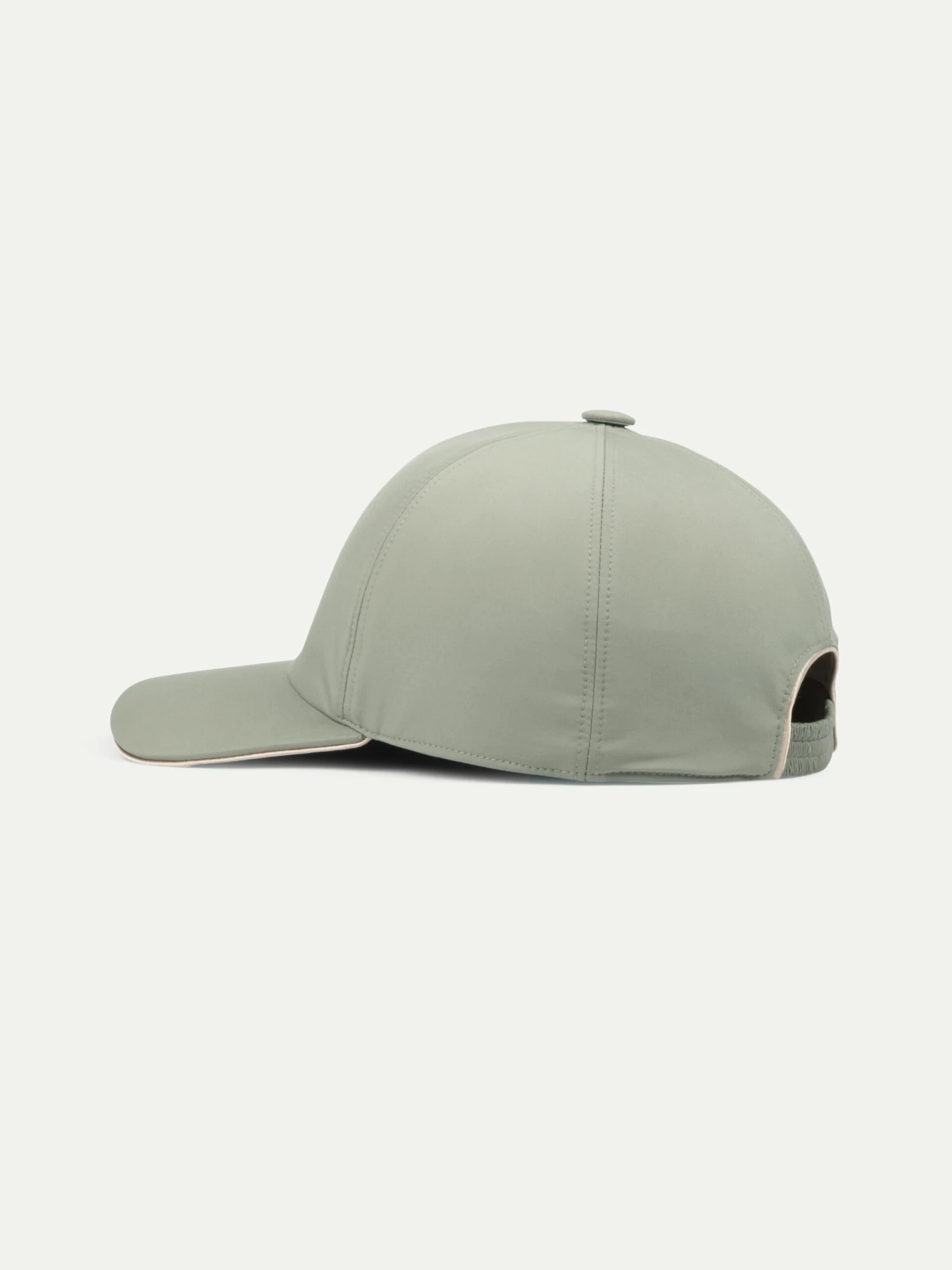 This baseball cap has been made in Italy from luxurious technical fabric. The soft matte outer shell is crafted from recycled fish nets and boasts a wind- and waterproof finish, while the interior is lined with 100% cotton for ultimate comfort. A refined detail, the signature Aurélien gold satin piping around the brim. Ideal for refined leisure looks.