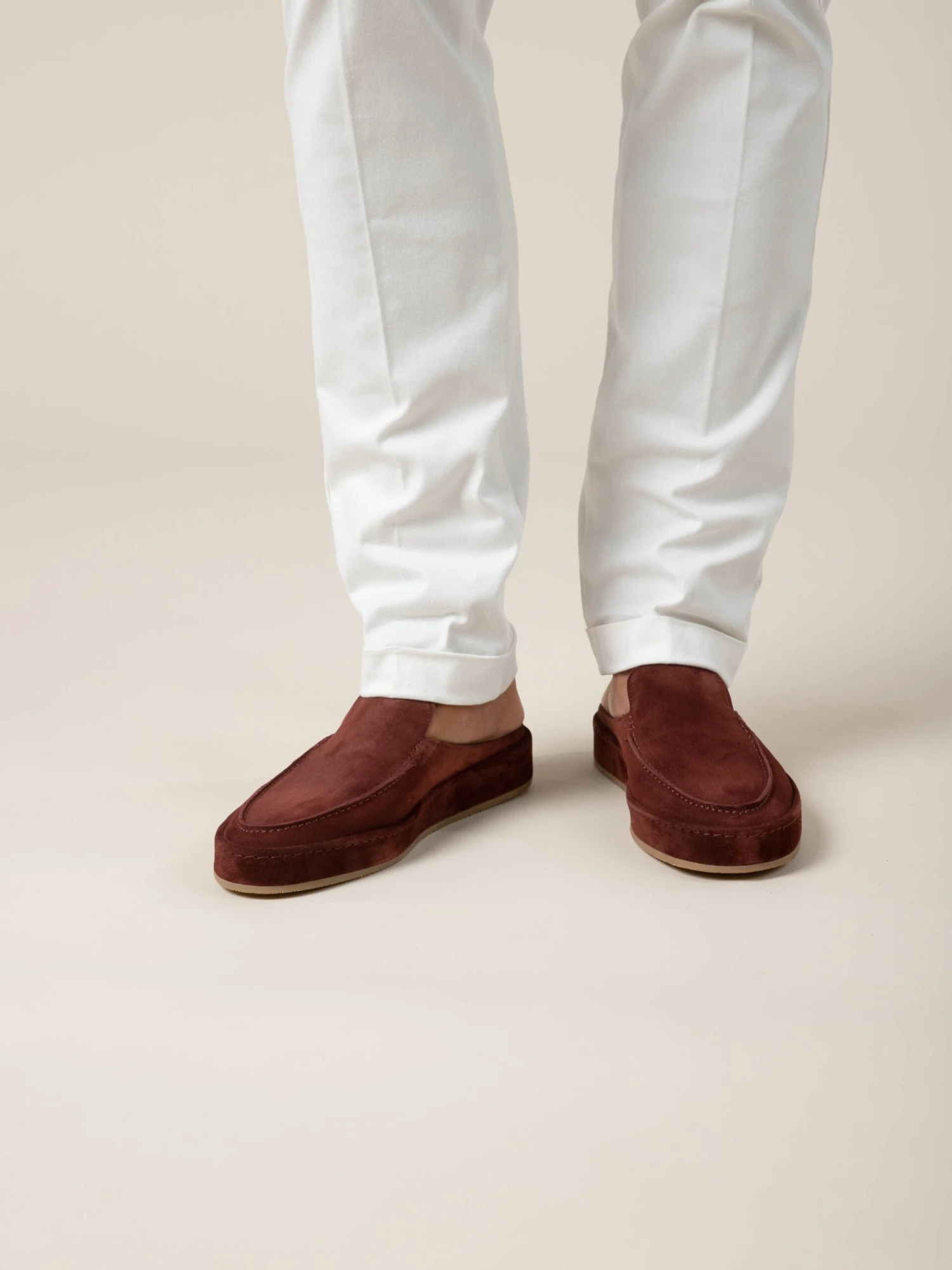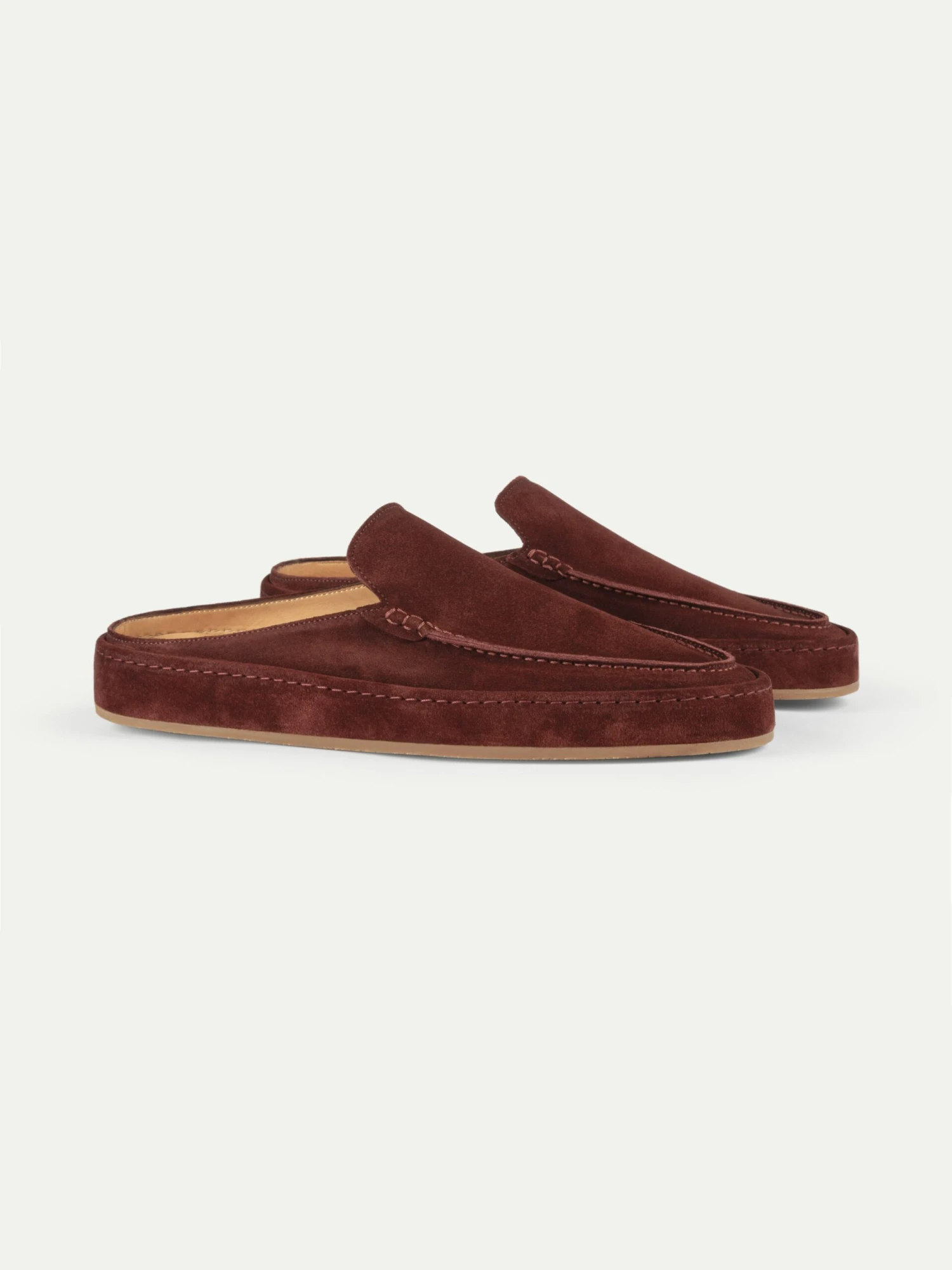Our iconic Voyager Loafer is reimagined in a backless design, expertly crafted from supple suede and luxuriously lined with smooth leather. Its unique construction and stitching technique create a suede-trimmed sole that blends seamlessly with the silhouette. An ideal companion for seaside strolls or days spent at the beach.