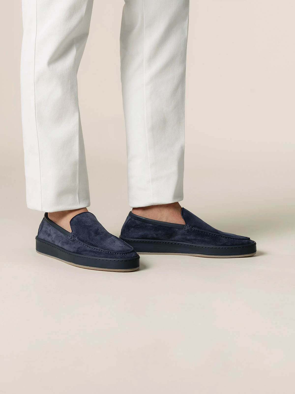The Aurélien Voyager Loafer has been crafted from supple suede with smooth leather linings. The upper of the shoe is stitched to the midsole using a special technique. The result is a rubberised leather trimmed sole which flawlessly integrates into the design of the shoe. With its plush suede and meticulous construction the Voyager Loafer represents a contemporary approach to luxury.