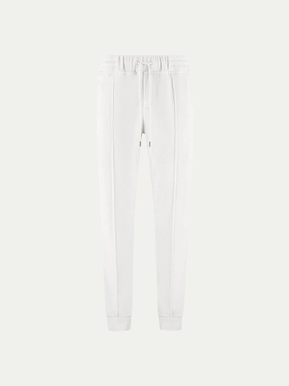 These sweatpants are a comfortable and sleek choice for long-haul flights or low-key weekends at home. They are made from our soft terry towelling fabric that feels soft against the skin. The stitched detailing makes them smarter than your average sweatpants. Perfect for leisure and lounging.